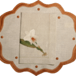 Set Jogo Americano Colonial e Guardanapo Phalaenopsis, confeccionados em linho puro.