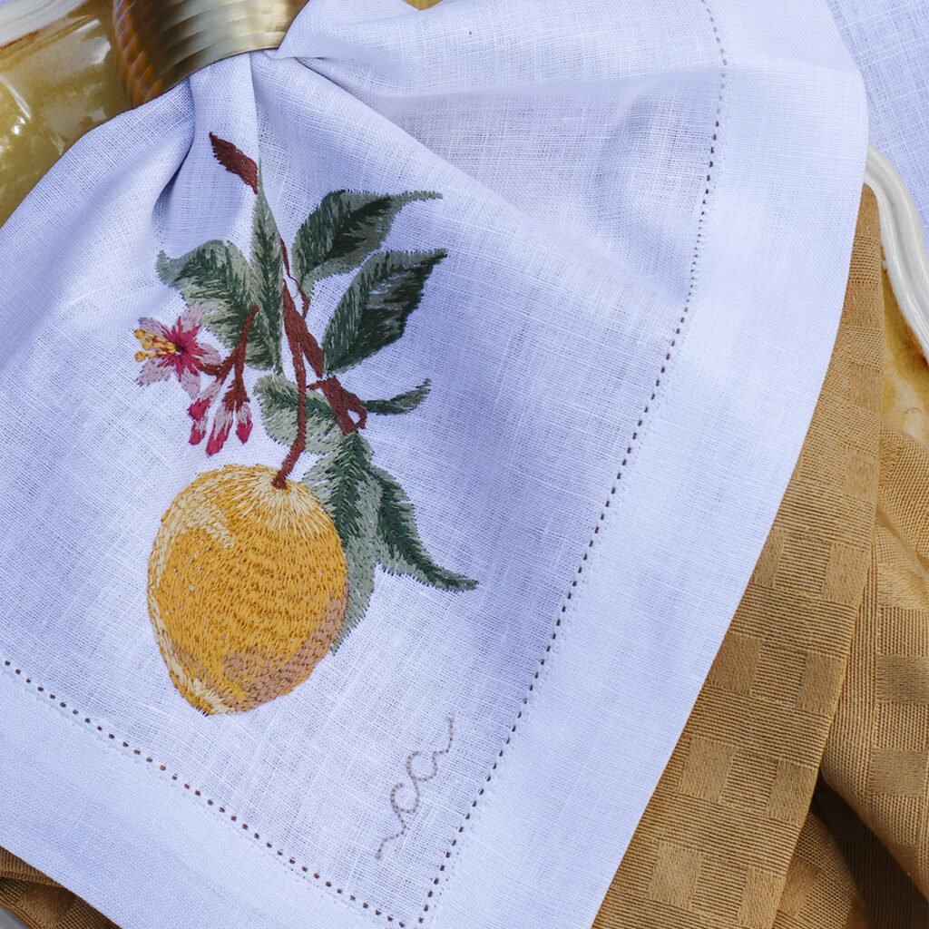 O bordado no barrado do jogo americano Sicília é leve, fresco e cheio de vida. Ele traz a atmosfera solar da coleção para a base da mesa, com tons suaves e pontos muito bem definidos. Um charme delicado, que valoriza a composição como um todo.